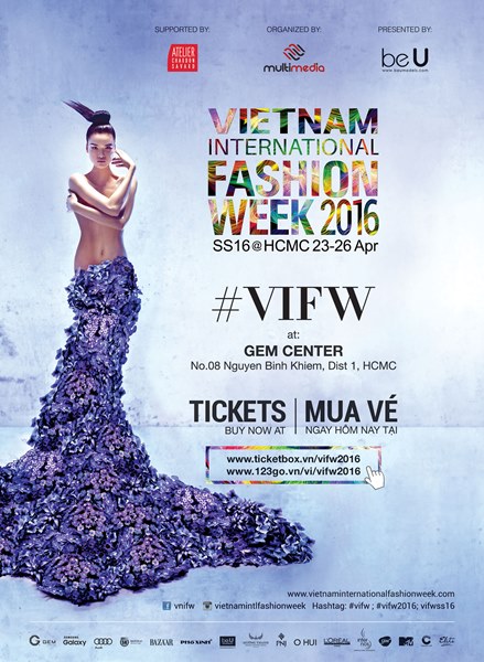 Bên cạnh đó, những tín đồ thời trang sẽ có dịp chiêm ngưỡng những bộ sưu tập độc đáo và đẳng cấp nhất tại Vietnam International Fashion Week Xuân Hè. Nếu bạn là người yêu thời trang, hãy nhanh tay sở hữu chiếc vé của sư kiện thời trang “đỉnh” nhất năm 2016. Cổng bán vé chính thức của chương trình tại www.ticketbox.vn/vifw2016www.123go.vn/vi/vifw2016 ngay từ hôm nay. Thông tin chi tiết về sự kiện được cập nhật tại website www.vietnaminternationalfashionweek.com