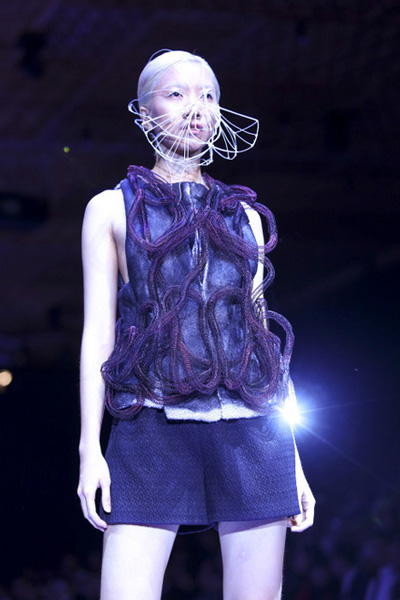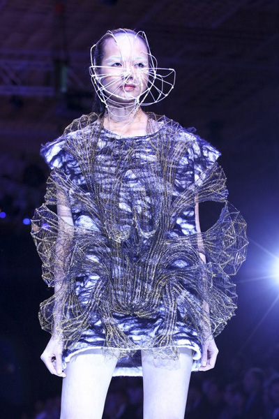 Các thiết kế mặt nạ kim loại che khuất khuôn mặt người mẫu cũng là điểm nhấn.