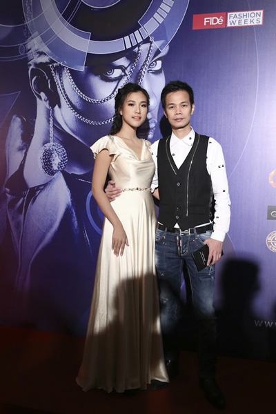 Hoàng Oanh dịu dàng và tinh khôi trong thiết kế đầm lụa bên cạnh NTK Hoàng Hải.